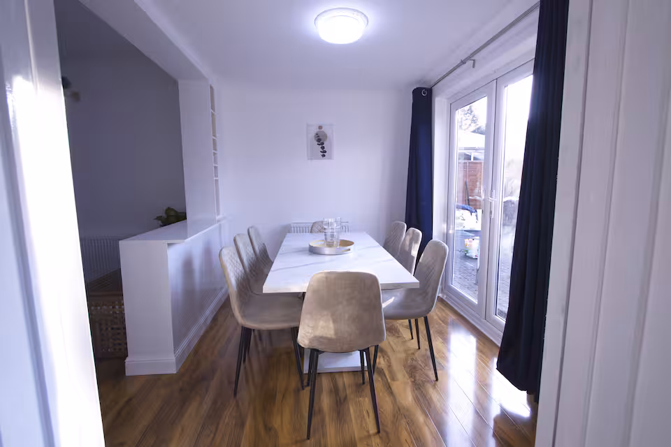 Modern 3-bed bungalow in Greenford, ideal for contractors, business travellers and relocation stays. Sleeps up to 8 with 2 king beds and 4 singles. Fully equipped kitchen, bright living area, fast Wi-Fi, parking and private garden. Excellent access to Greenford Station, Ealing Broadway, Wembley and Heathrow. Comfortable, clean and fully set up for extended stays, with flexible arrangements and discounts available for longer bookings.